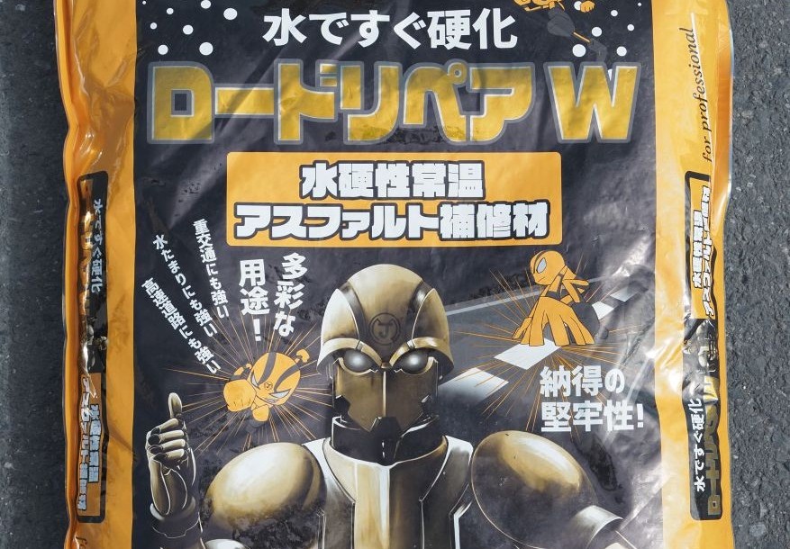 超速乾・高耐久。水を混ぜて塗るだけ。アスファルトのひび割れに。